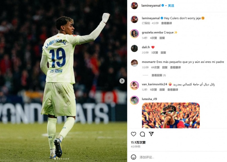 打破西甲4個半月進球荒!亞馬爾社媒曬照慶祝:巴薩球迷們別擔心