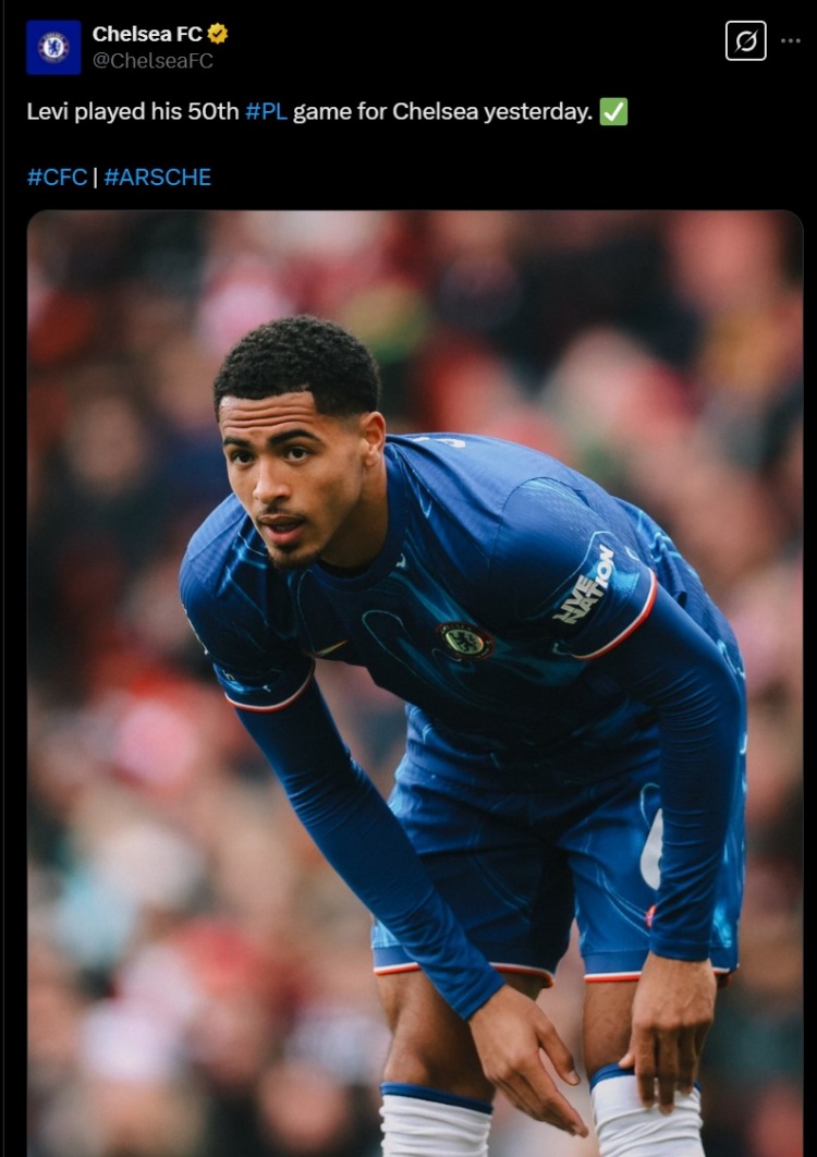 本場比賽科爾維爾首發(fā)出戰(zhàn),這也是他代表切爾西在英超賽場的第50次出場里程碑,球隊官方也曬照為其紀(jì)念。