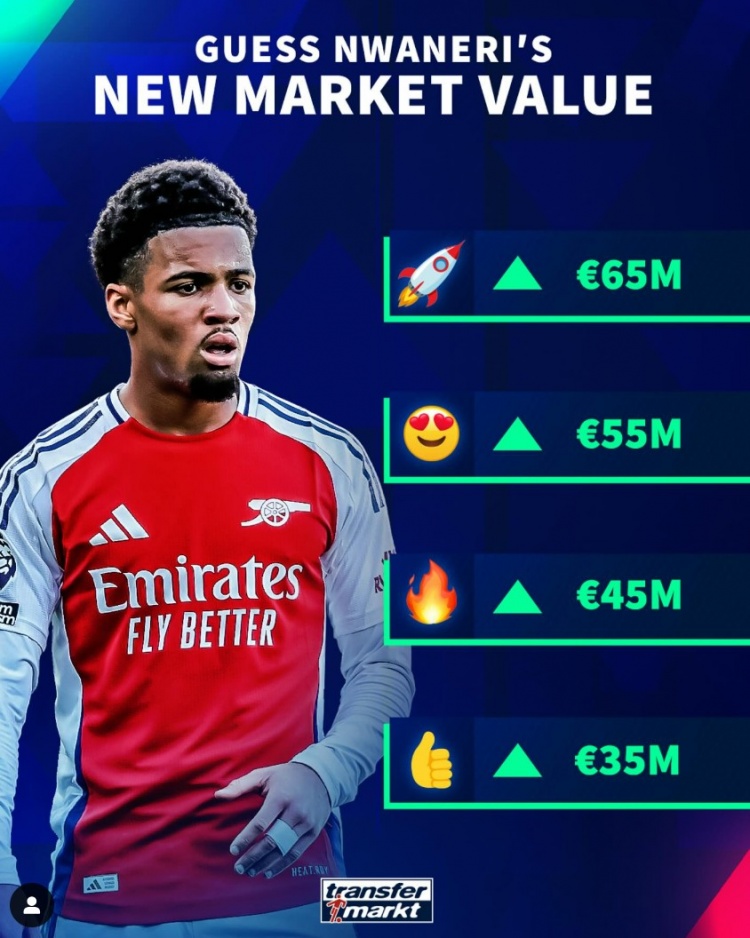 3月17日訊 德轉將在明日更新英超球員身價,德轉預熱阿森納小將恩瓦內里將是身價大漲的球員之一。