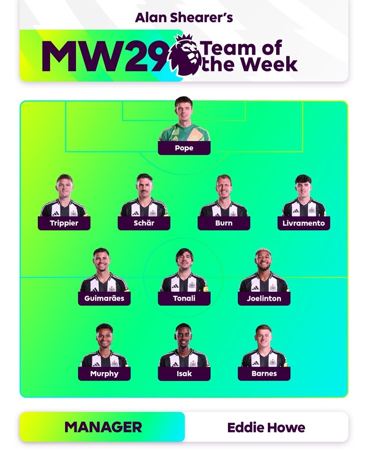 在昨天結(jié)束的聯(lián)賽杯決賽中,紐卡2-1擊敗利物浦,時(shí)隔70年再次奪冠。英超官方也調(diào)侃道,對(duì)于紐卡名宿希勒來說,本輪的最佳陣容只有一個(gè),那就是紐卡在聯(lián)賽杯決賽中的首發(fā)陣容。