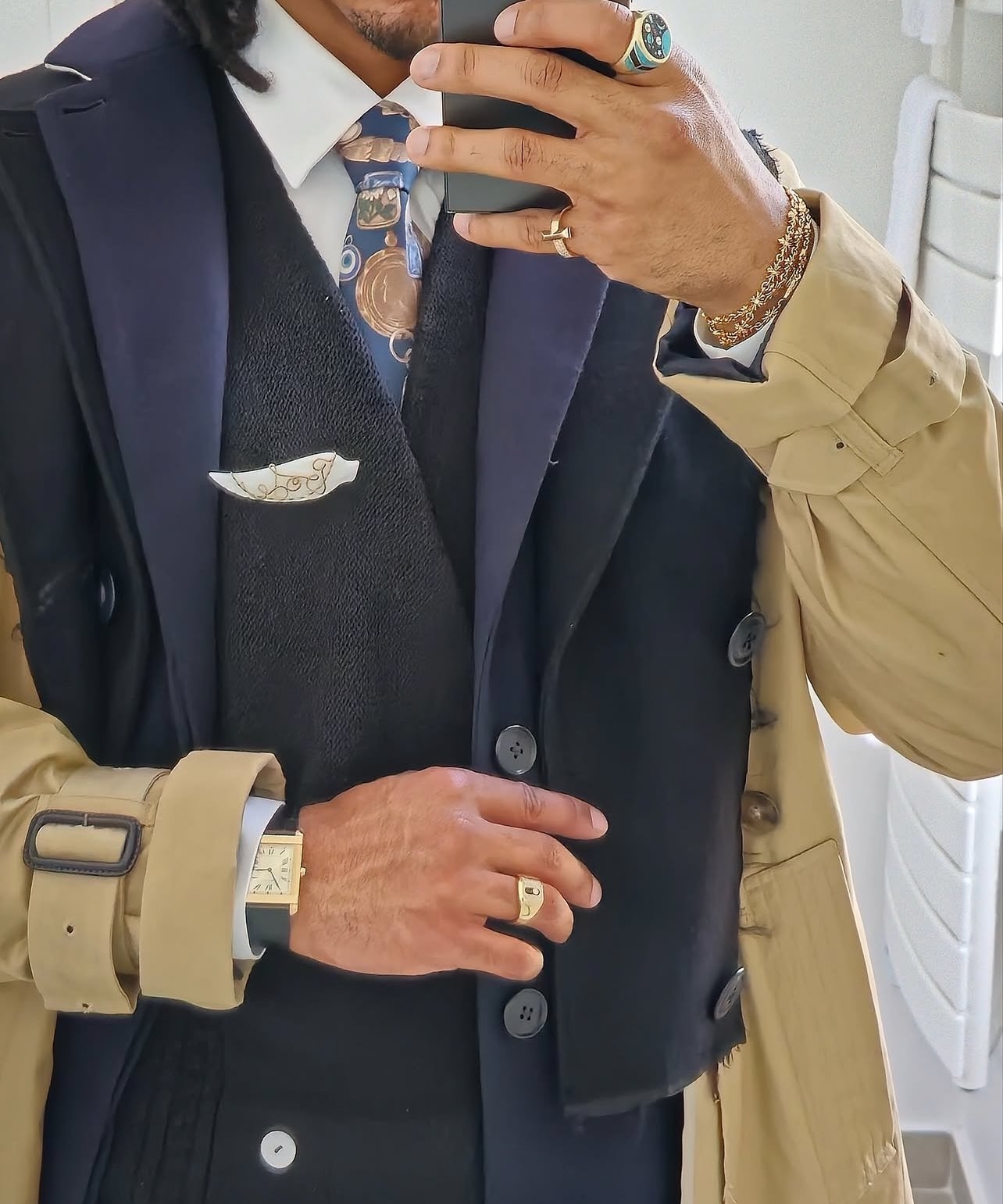 這一次孔德的穿搭中,最引人注目的就是他身上的拼接外套,這件大衣來自日本小眾設(shè)計(jì)師品牌FACETASM,是2022-23的秋冬系列中的一件。