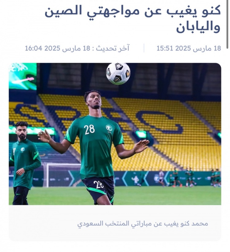 3月19日訊 據(jù)沙特媒體“akhbaar24”報(bào)道,沙特國腳中場(chǎng)穆罕默德-卡努將因傷缺席本月對(duì)陣中國和日本的兩場(chǎng)18強(qiáng)賽比賽。