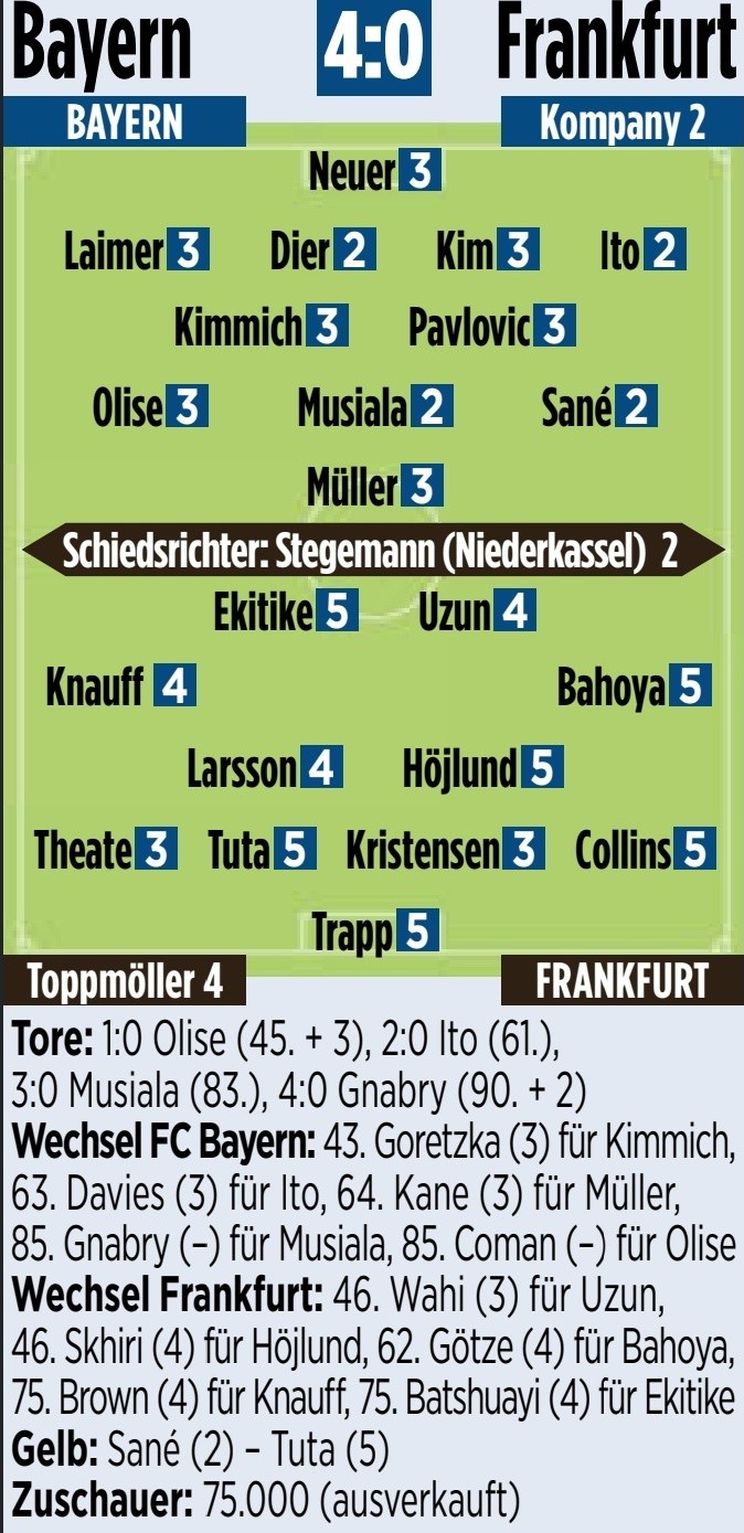 圖片報評分:穆西亞拉、薩內(nèi)、伊藤洋輝、戴爾2分并列最佳