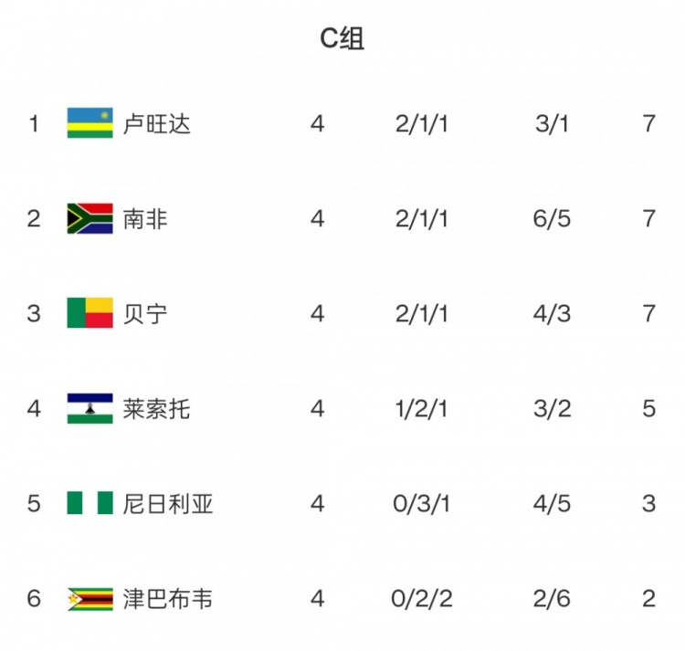 C組:盧旺達(dá)、南非、貝寧同積7分,競(jìng)爭(zhēng)激烈!尼日利亞4輪僅3分,出線告急!