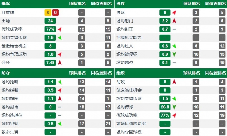 此外,在防守的積極性上也有提升的。2024賽季,他可貢獻場均1.1次搶斷、0.5次攔截及1.1次解圍,三項數據在10號位的中超球員中排名靠前。