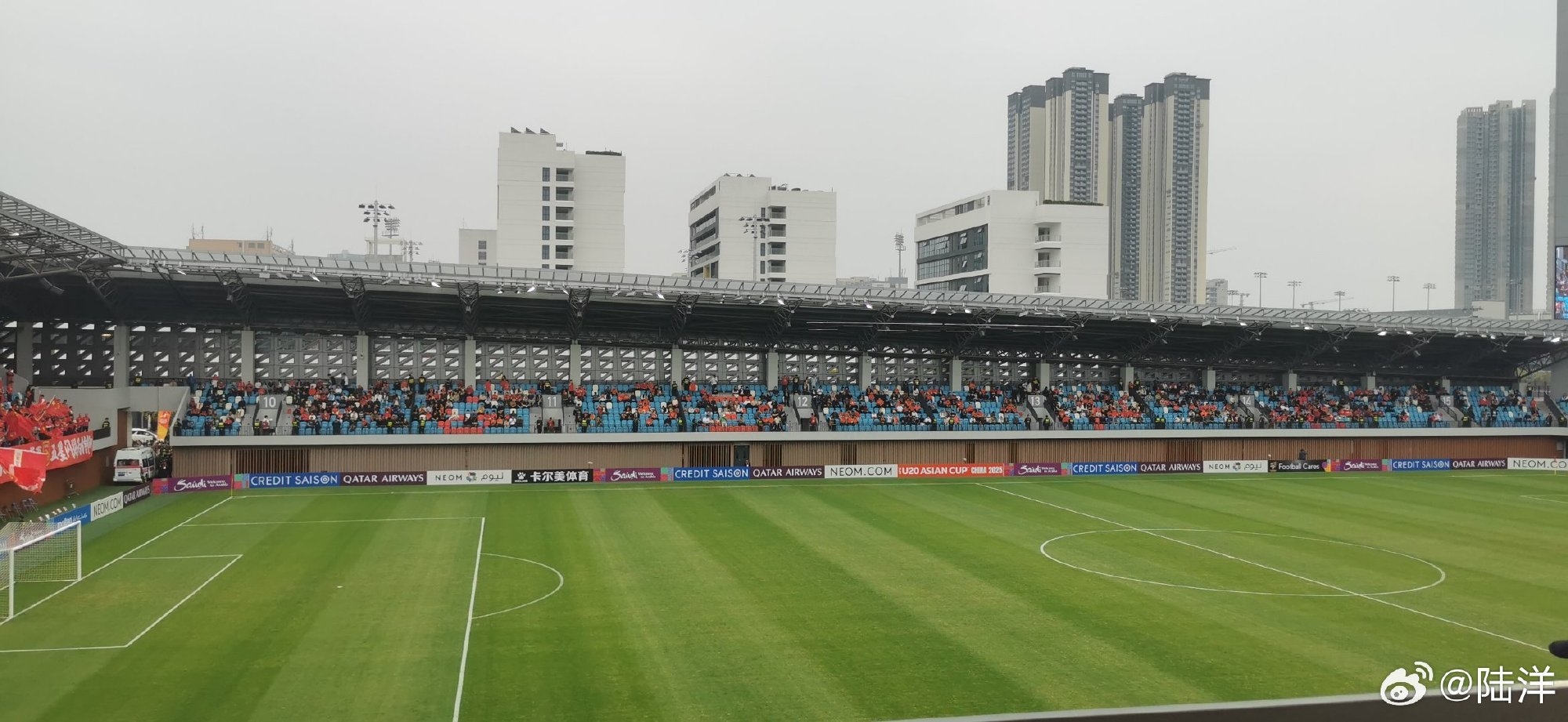 陸洋表示:離開賽15分鐘,對面看臺是這樣的,最近一個星期有兩位數(shù)的球迷在我這兒留言說搶不到票,所以替大家問一句“票哪兒去了??”