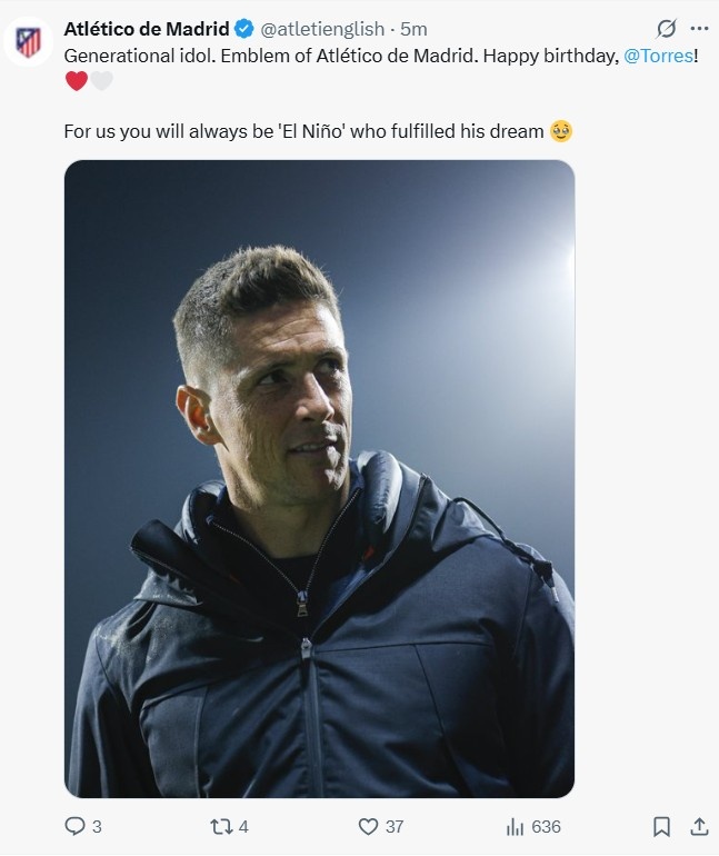 馬競官方表示道:“一代偶像,馬競的象征,生日快樂托雷斯!??????對我們來說,你永遠(yuǎn)是已經(jīng)實(shí)現(xiàn)夢想的圣嬰?????!?/p>