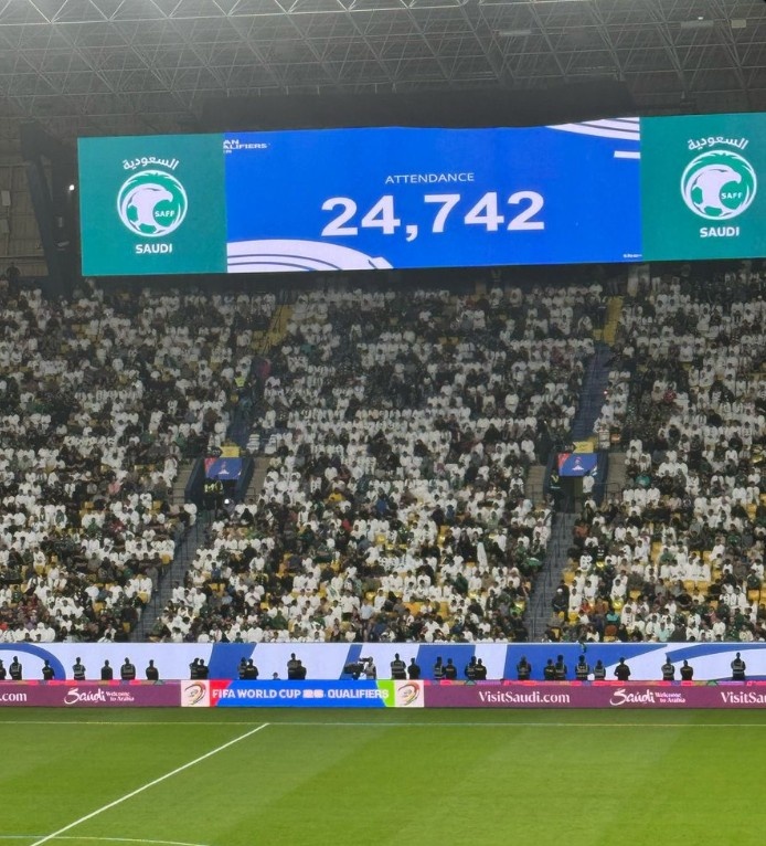 國足0-1客負(fù)沙特,本場(chǎng)比賽現(xiàn)場(chǎng)觀眾人數(shù)為24742人