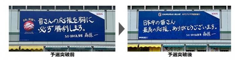 而在擊敗巴林隊(duì)獲得世界杯入場(chǎng)券后,看板內(nèi)容改成:“日本的各位,感謝你們最棒的聲援?!?/p>