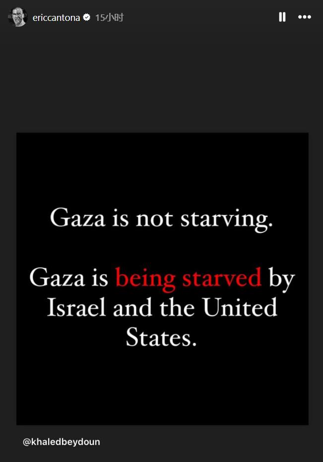 聲援巴勒斯坦!坎通納社媒轉(zhuǎn)發(fā)快拍:以色列和美國(guó)想餓死加沙
