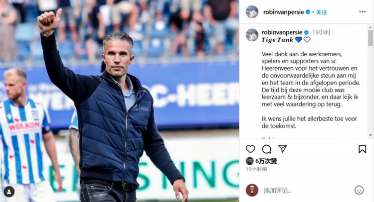 2月24日訊 范佩西今天在Instagram發(fā)文,告別了海倫芬俱樂部。