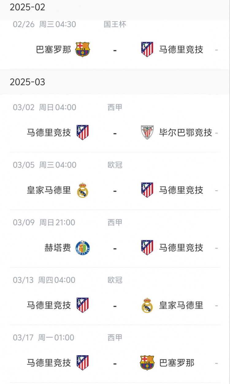 2月24日訊 未來(lái)三周,巴薩、皇馬和馬競(jìng)將迎來(lái)一系列關(guān)鍵賽事。《每日體育報(bào)》報(bào)道,巴薩的賽程相對(duì)較為有利,六場(chǎng)比賽中將有四場(chǎng)主場(chǎng)作戰(zhàn)。