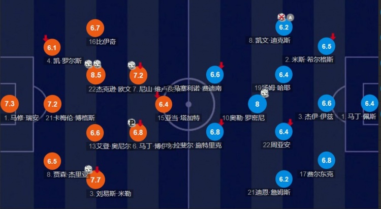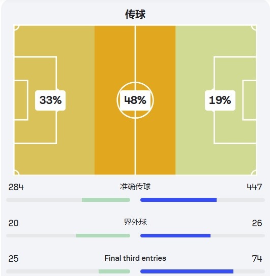 澳大利亞玩的就是效率,控球率、進攻三區(qū)進入次數(shù)比印尼還少,可比分卻是大勝(藍(lán)色方為印尼)