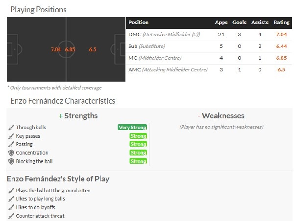 恩佐的特點是處理球聰明,也能成為后腰麥卡利斯特和前場組織者阿爾瓦雷斯之間的最佳銜接。