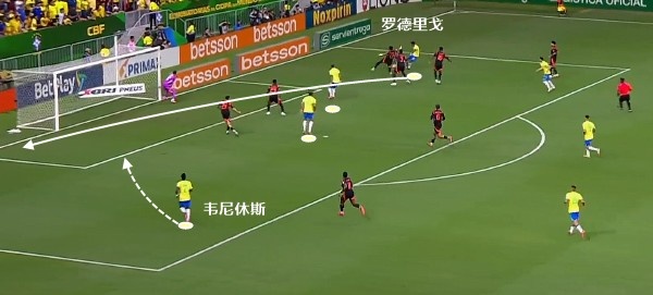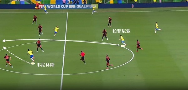 不過上一場面對哥倫比亞,韋尼休斯在一開場就利用速度前插后制造點球,送出直塞球的,恰恰是回撤的拉菲尼亞。