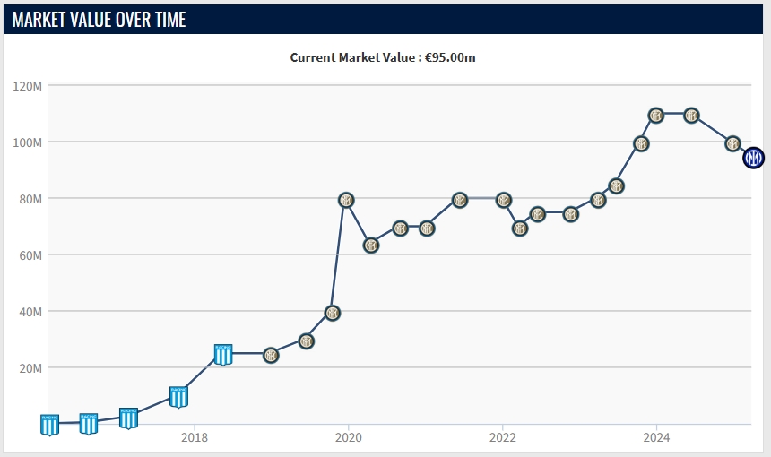 下跌500萬(wàn)!27歲勞塔羅最新身價(jià)為9500萬(wàn)歐,最高身價(jià)曾達(dá)1.1億歐