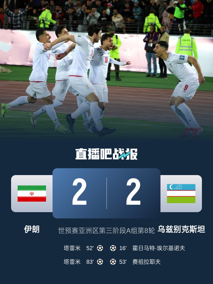 伊朗2-2戰(zhàn)平烏茲別克斯坦,伊朗提前鎖定直通世界杯!本場(chǎng)塔雷米雙響。