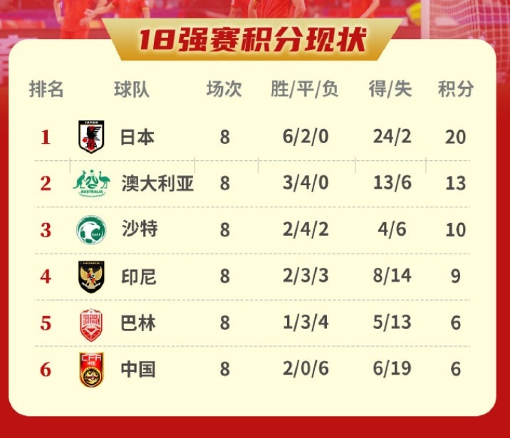 3月26日訊 18強賽第8輪,國足主場0-2不敵澳大利亞,暫時排名小組墊底?!蹲闱驁蟆纷姆治隽藝愠鼍€形勢,如果下輪輸給印尼將提前出局。