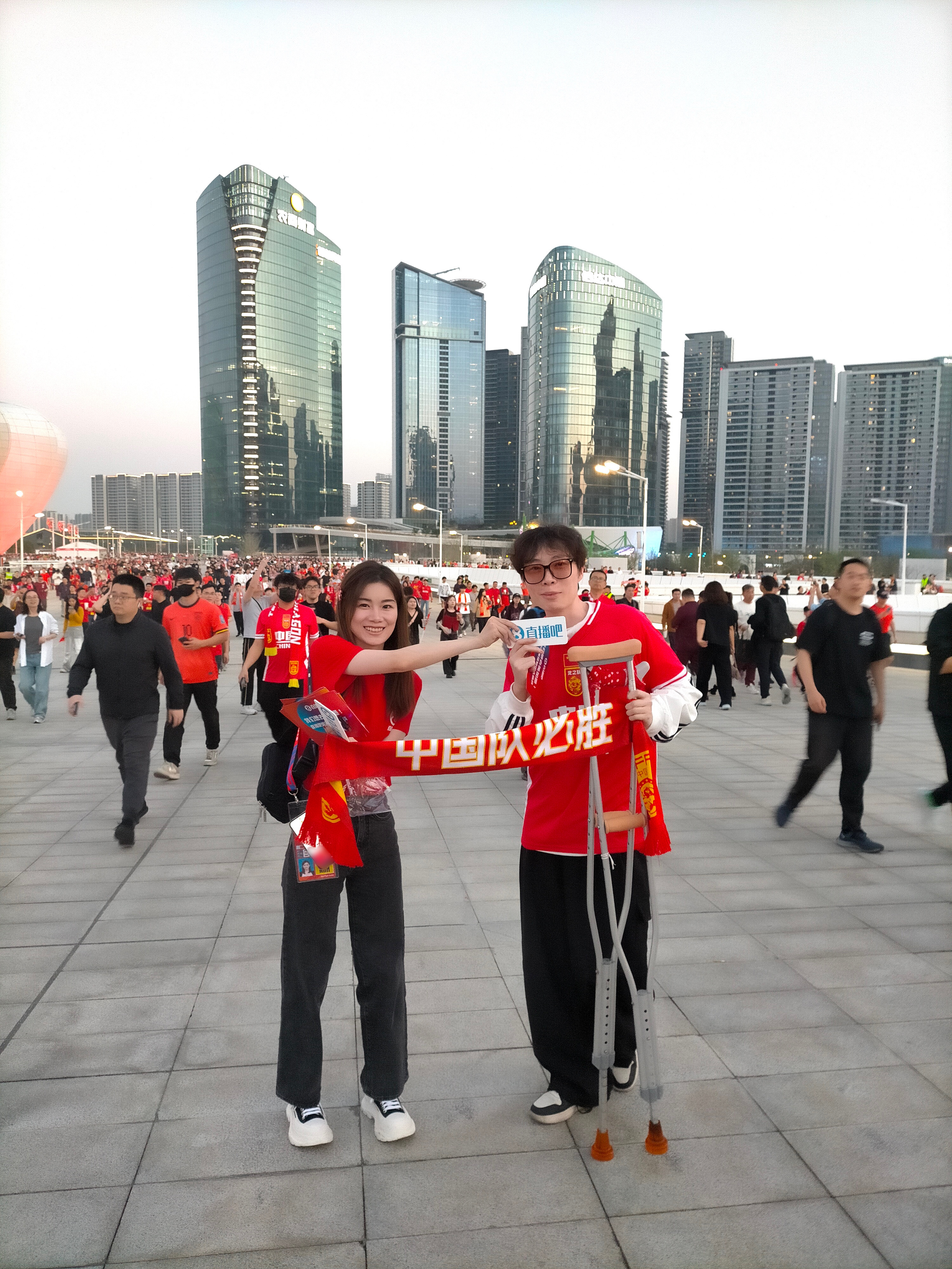 球迷入場(chǎng)前,特邀知名足球解說(shuō)員劉暢、吳桐現(xiàn)身球場(chǎng)外圍互動(dòng)區(qū),與候場(chǎng)球迷共同開(kāi)啟“我們想去美加墨·國(guó)足知識(shí)大挑戰(zhàn)”主題活動(dòng)。兩位解說(shuō)以專業(yè)又不失風(fēng)趣的風(fēng)格串聯(lián)答題環(huán)節(jié),現(xiàn)場(chǎng)球迷踴躍參與,爭(zhēng)奪國(guó)足助威圍巾等限定周邊?;顒?dòng)過(guò)程中,一位從西安乘坐火車輾轉(zhuǎn)20小時(shí),專程來(lái)見(jiàn)證這場(chǎng)比賽的12年老吧友坦言:“勝負(fù)之外,主隊(duì)永遠(yuǎn)值得奔赴”。更有廣東韶關(guān)學(xué)生球迷不惜暫時(shí)放下學(xué)業(yè)來(lái)杭州觀賽,以自身行動(dòng)詮釋“00后”對(duì)國(guó)足的熱忱。