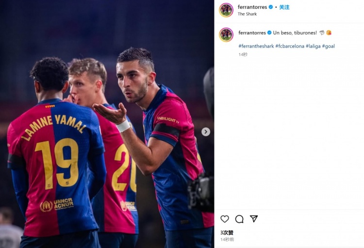 費(fèi)蘭-托雷斯在此前多次表示自己很崇尚自信而貪婪的“鯊魚(yú)精神”,他本賽季各項(xiàng)賽事為巴薩33場(chǎng)貢獻(xiàn)14球3助攻。