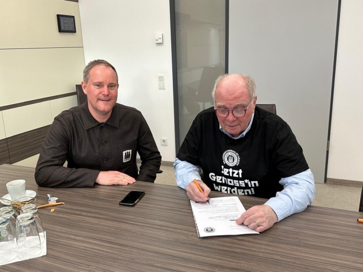 到目前為止,已有超過19000人加入了這家合作社,認購股份總價值已超過2350萬歐元,現在成員也包括了烏利-赫內斯。在奧克-戈特利希到訪慕尼黑期間,赫內斯穿上了圣保利合作社的T恤并認購了股份。就這樣,這位當年的“拯救者”如今成為了一名同志。