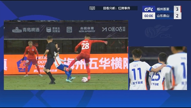 03月29日訊 泰山vs梅州第60分鐘,鐘浩然跳起搶斷,鞋底踩著彭欣力膝蓋起飛!但是裁判沒有響哨!