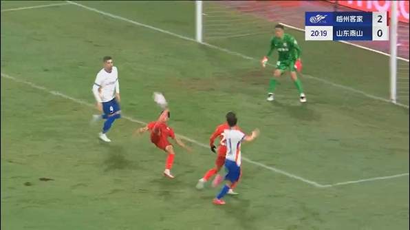 03月29日訊 梅州vs泰山第20分鐘,梅州前場快速傳切配合,楊超聲精彩倒鉤!梅州2-0領(lǐng)先泰山!