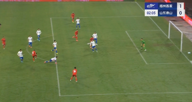 梅州開場(chǎng)2分鐘1-0泰山!茹子楠不停球抽射世界波攻破王大雷大門
