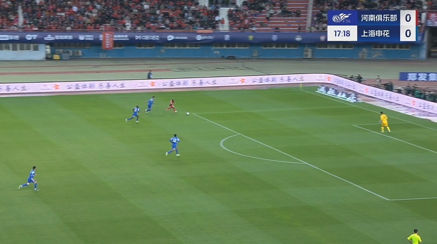 03月29日訊 中超第3輪,河南vs申花。比賽第17分鐘,阿奇姆彭邊路超車蔣圣龍,隨后小角度打門被撲。