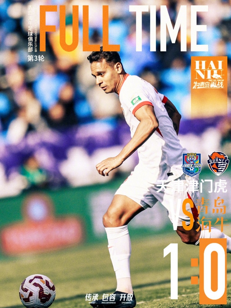 全場比賽結束,青島海牛客場0-1不敵天津津門虎。
