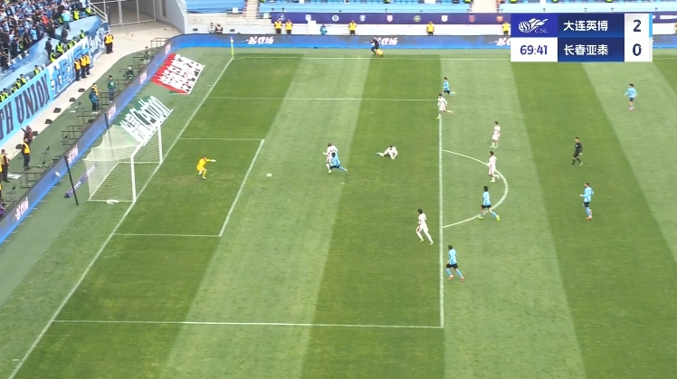 03月29日訊 大連英博vs長(zhǎng)春亞泰第70分鐘,呂焯毅傳中,馬萊萊搶點(diǎn)掃射破門!大連英博2-0領(lǐng)先!