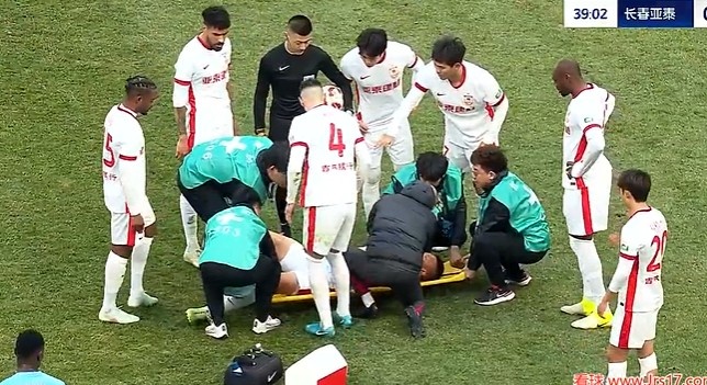 第38分鐘,譚龍拼搶中受傷倒地被擔(dān)架抬出場(chǎng)外,同時(shí)李申圓受傷堅(jiān)持不住回更衣室。↓