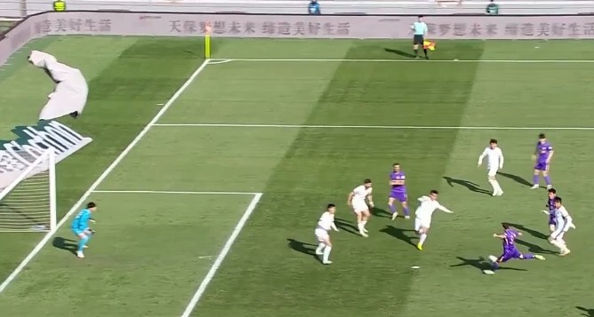 第21分鐘,孫銘謙打門(mén)被封堵,巴頓補(bǔ)射破門(mén),但主裁判經(jīng)VAR確認(rèn)后示意進(jìn)球無(wú)效。↓