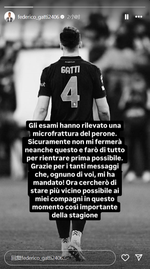 這名中衛(wèi)更新社媒,說道:經(jīng)檢查發(fā)現(xiàn)腓骨出現(xiàn)輕微骨折,這當(dāng)然不會阻擋我,我會盡一切努力盡快回來,謝謝你們給我發(fā)來的信息,在本賽季現(xiàn)階段這樣非常重要的時刻,我會盡可能與我的隊友們保持密切聯(lián)系。