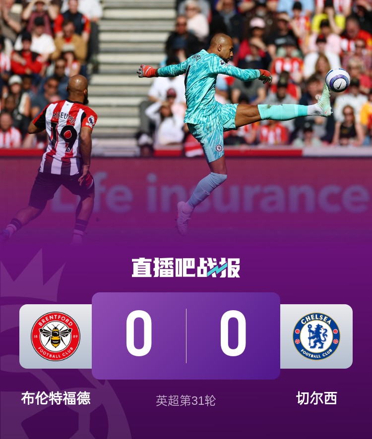 切爾西0-0布倫特福德無(wú)緣連勝仍第四 藍(lán)軍21腳射門(mén)弗萊肯屢次撲救