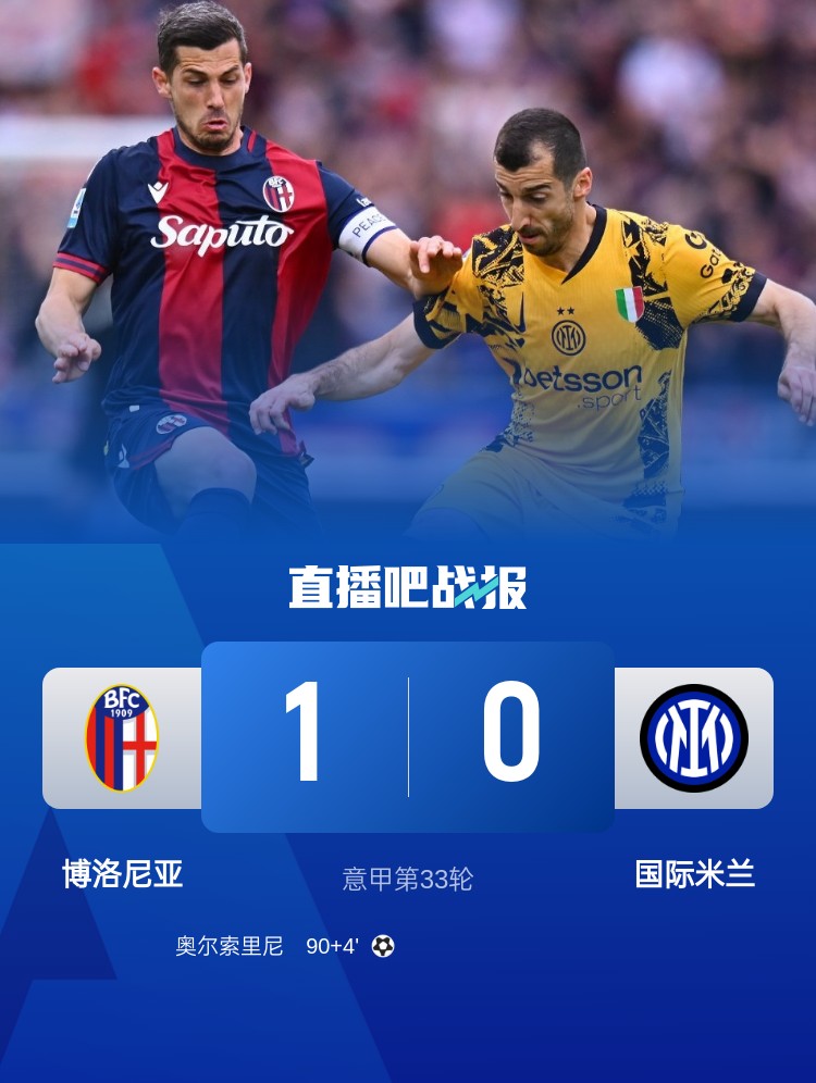 讀秒遭絕殺!國米0-1博洛尼亞凈勝球優(yōu)勢領(lǐng)跑 3天后意杯戰(zhàn)米蘭