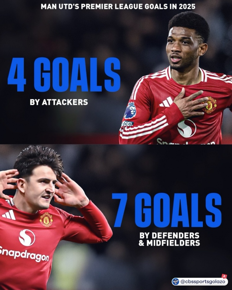 據(jù)統(tǒng)計,在2025年的英超比賽中,曼聯(lián)中場和后衛(wèi)一共打進了7球,前鋒一共只打進了4球,且這4粒進球均由阿瑪?shù)乱蝗税鼣垺?/p>