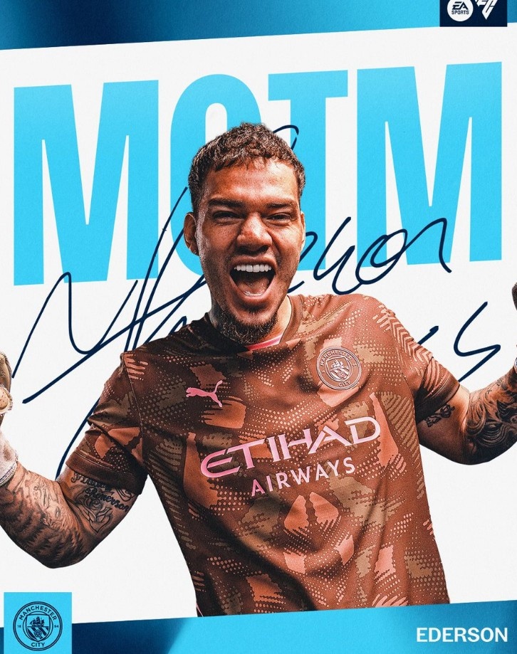 本場比賽曼城門將埃德森表現(xiàn)出色,完成6次撲救力保球門不失,賽后他也當(dāng)選曼城官方評選出的本場隊(duì)內(nèi)最佳球員。
