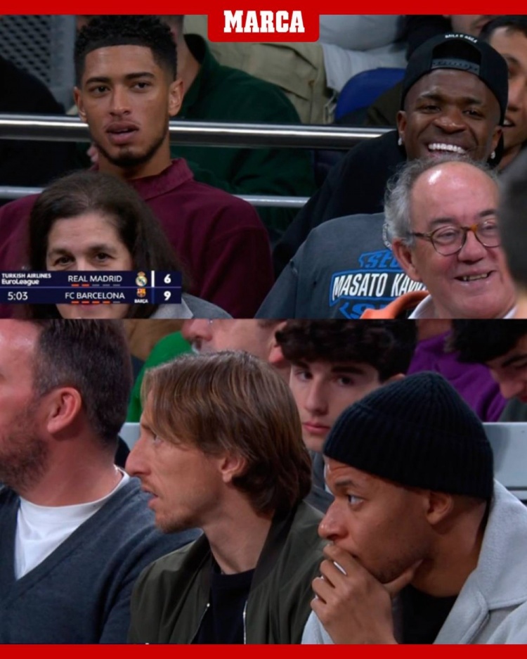國(guó)王杯取勝后,姆巴佩&貝林&維尼修斯等現(xiàn)場(chǎng)觀看歐冠男籃國(guó)家德比