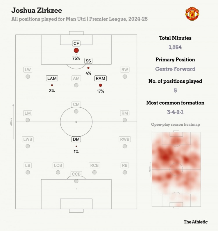 齊爾克澤在曼聯(lián)出場(chǎng)位置分布圖