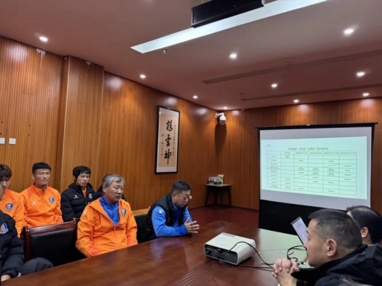 俱樂部執(zhí)行董事蘆寧江首先代表俱樂部歡迎球隊(duì)結(jié)束在外冬訓(xùn)返回瑞昌基地,然后向球隊(duì)詳細(xì)介紹了俱樂部的情況、部門機(jī)構(gòu)等,并重點(diǎn)傳達(dá)了江西省體育局、江西省足球協(xié)會(huì)2025賽季中國(guó)足球聯(lián)賽(江西賽區(qū))工作部署會(huì)議精神,強(qiáng)調(diào)嚴(yán)格落實(shí)聯(lián)賽工作“五見面,五到位”;狠抓賽風(fēng)賽紀(jì)建設(shè),做到誠(chéng)信比賽、干凈比賽。
