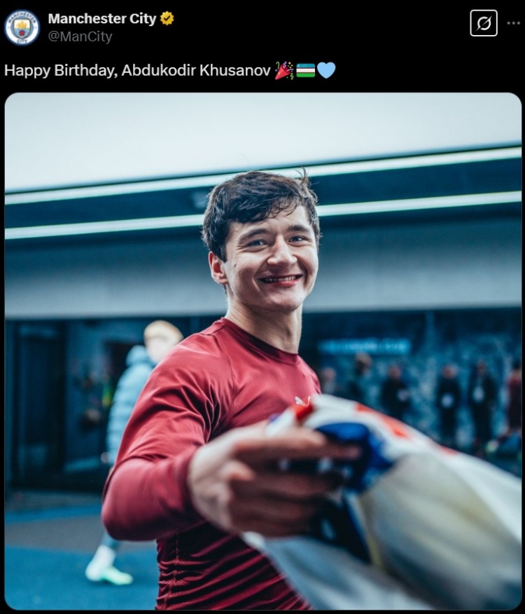 胡桑諾夫迎21歲生日,曼城官方曬照為其送上生日祝福