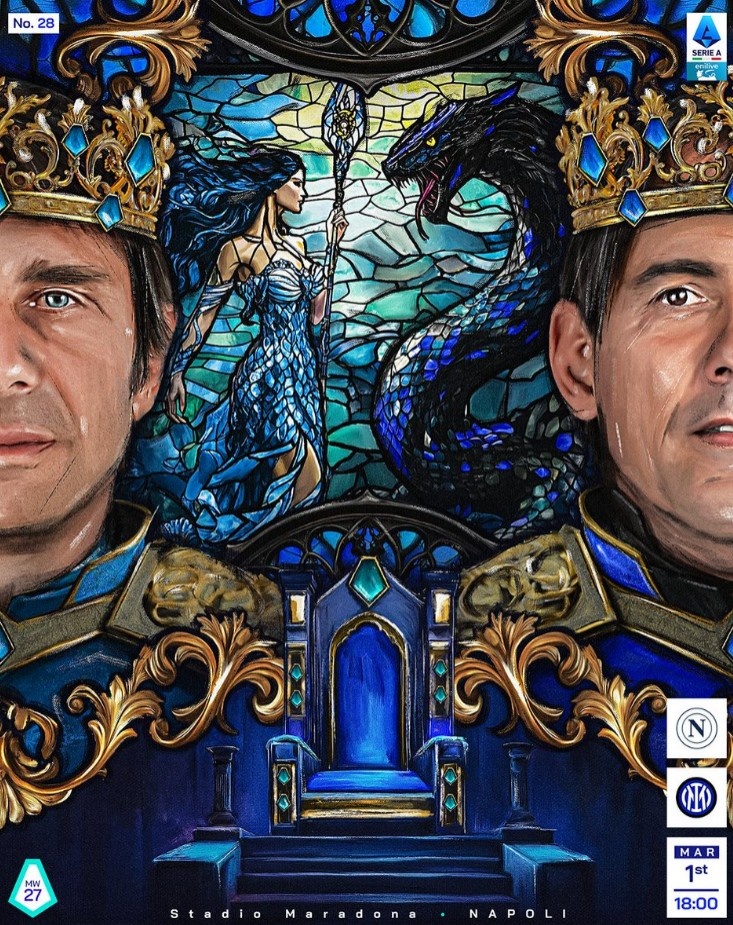 3月1日訊 本輪意甲將迎來國米與那不勒斯的焦點(diǎn)對(duì)話,意甲官方也曬出海報(bào)為本場比賽預(yù)熱,海報(bào)中的主角是兩隊(duì)主帥孔蒂、小因扎吉,兩人頭戴王冠爭奪王位。