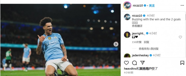 奧賴?yán)趇ns上寫道:“為勝利和2粒進(jìn)球感到興奮?!?/p>