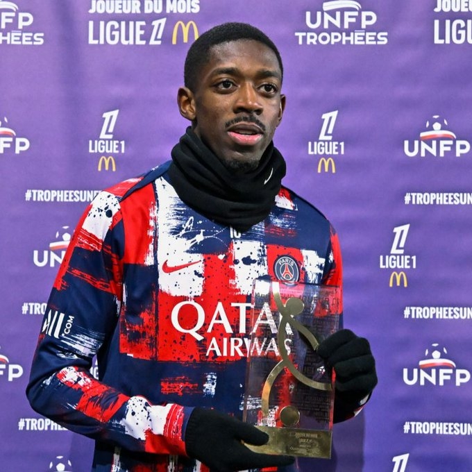 狀態(tài)火熱!登貝萊領(lǐng)取法甲1月最佳球員獎杯,得票率39%