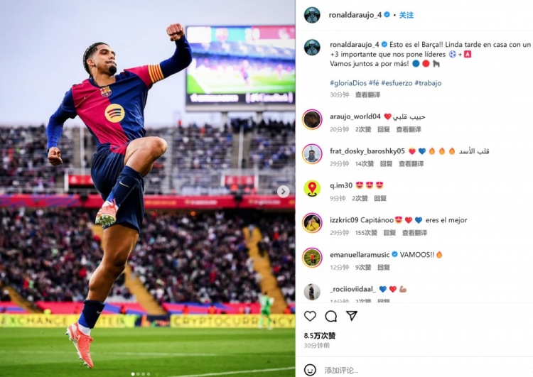阿勞霍也在賽后通過社媒曬出自己的慶祝照,并配文:“這就是巴薩!在主場度過了一個美好的下午!贏下關(guān)鍵三分,并傳射建功!讓我們團結(jié)一致贏得更多!”