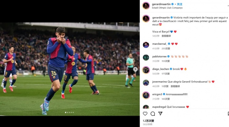 杰拉德-馬丁社媒:大勝對(duì)榜首至關(guān)重要,很高興能夠打進(jìn)巴薩首球