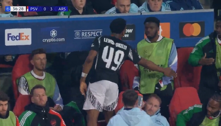 03月05日訊 歐冠1/8決賽首回合,埃因霍溫主場(chǎng)迎戰(zhàn)阿森納,比賽第35分鐘,阿森納換人調(diào)整,身背黃牌的斯凱利被卡拉菲奧里換下。