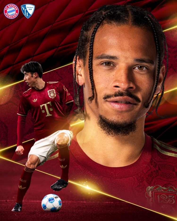海報(bào)左上角為對陣雙方隊(duì)徽,出鏡球員為薩內(nèi)和伊藤洋輝。目前,拜仁24戰(zhàn)積61分,以8分優(yōu)勢領(lǐng)跑積分榜;波鴻24戰(zhàn)積17分,排名第16位。
