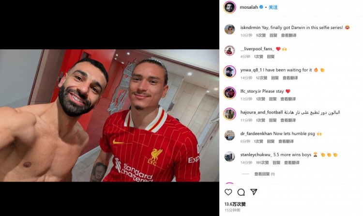 薩拉赫在本賽季比賽后通常都會曬出自己和進(jìn)球隊(duì)友的合照,球迷們也調(diào)侃道:“終于輪到努涅斯了?!?/p>